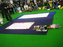 今回、書家の我部氏がパフォーマンスで書をしたためるとの事でその時間に合わせて会場へ・・・。