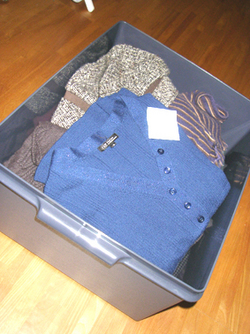 たいせつな衣類やバッグ、靴などは汚れを十分に落として薄葉紙包み密閉容器に入れ防虫剤のアルペニアペレットを入れて保管しましょう。